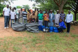 Le 5 septembre 2024, la remise des équipements a eu lieu à la Direction Provinciale de l’Agriculture à Kombissiri. Chaque producteur a reçu un lot complet comprenant une pompe thermique, un tuyau de refoulement et un tuyau d’aspersion. Ces outils permettront une exhaure d’eau efficace des BCER, facilitant ainsi l’accès à l’eau pour l’irrigation des cultures.